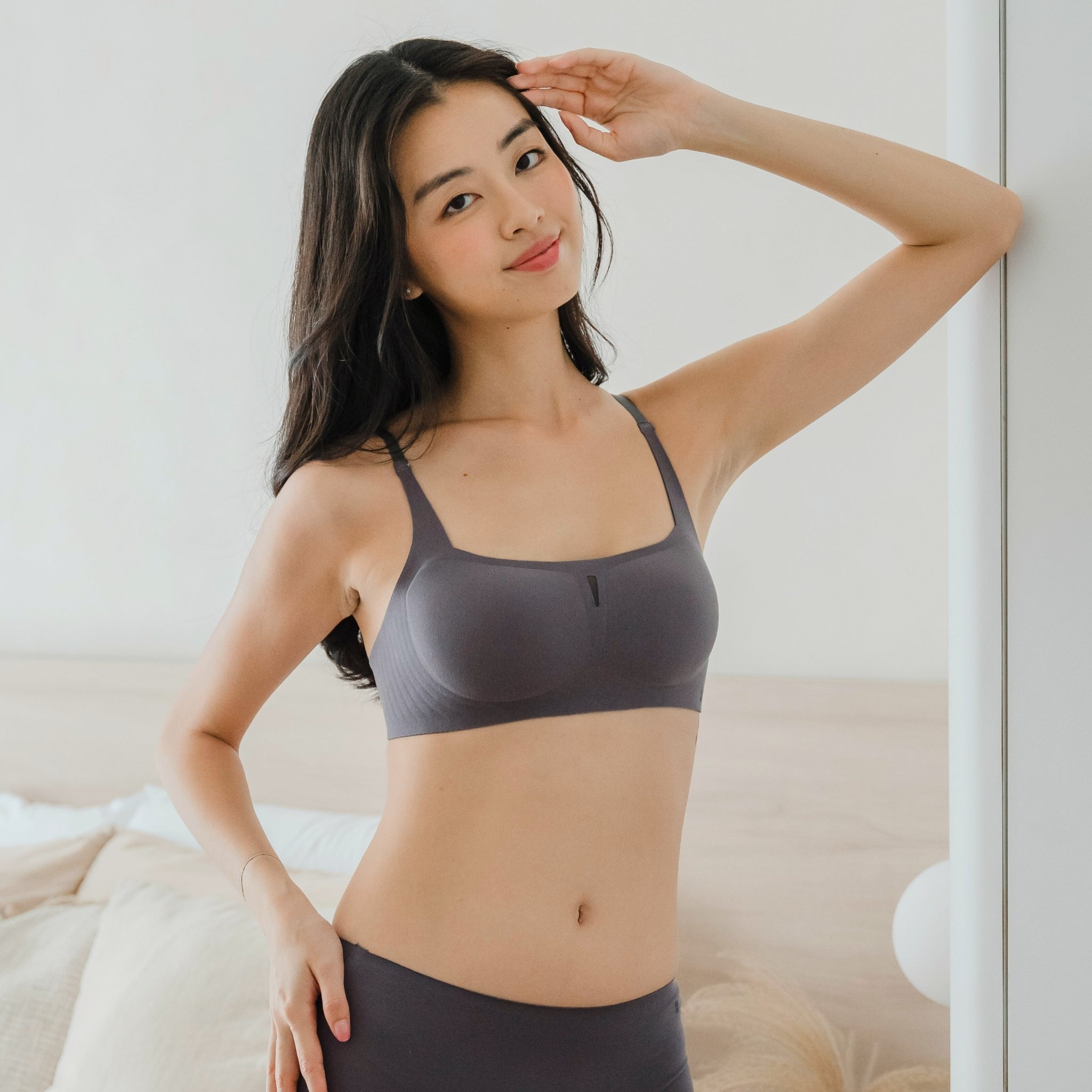 • air-ee Cotton Square Neck Seamless Bra in Charcoal (Machine Wash Edition) *Limited Edition